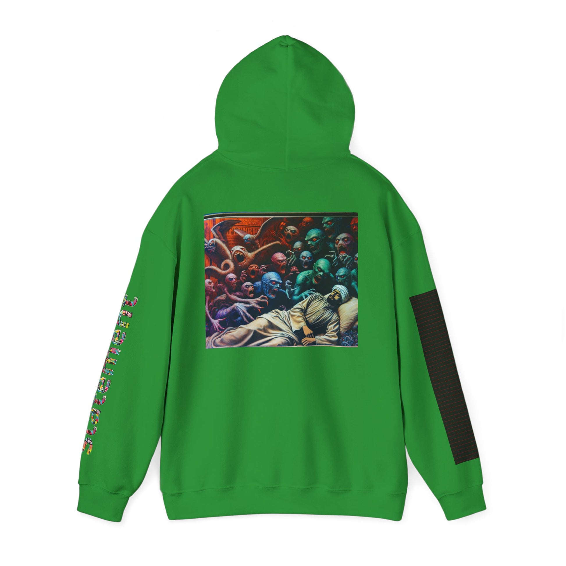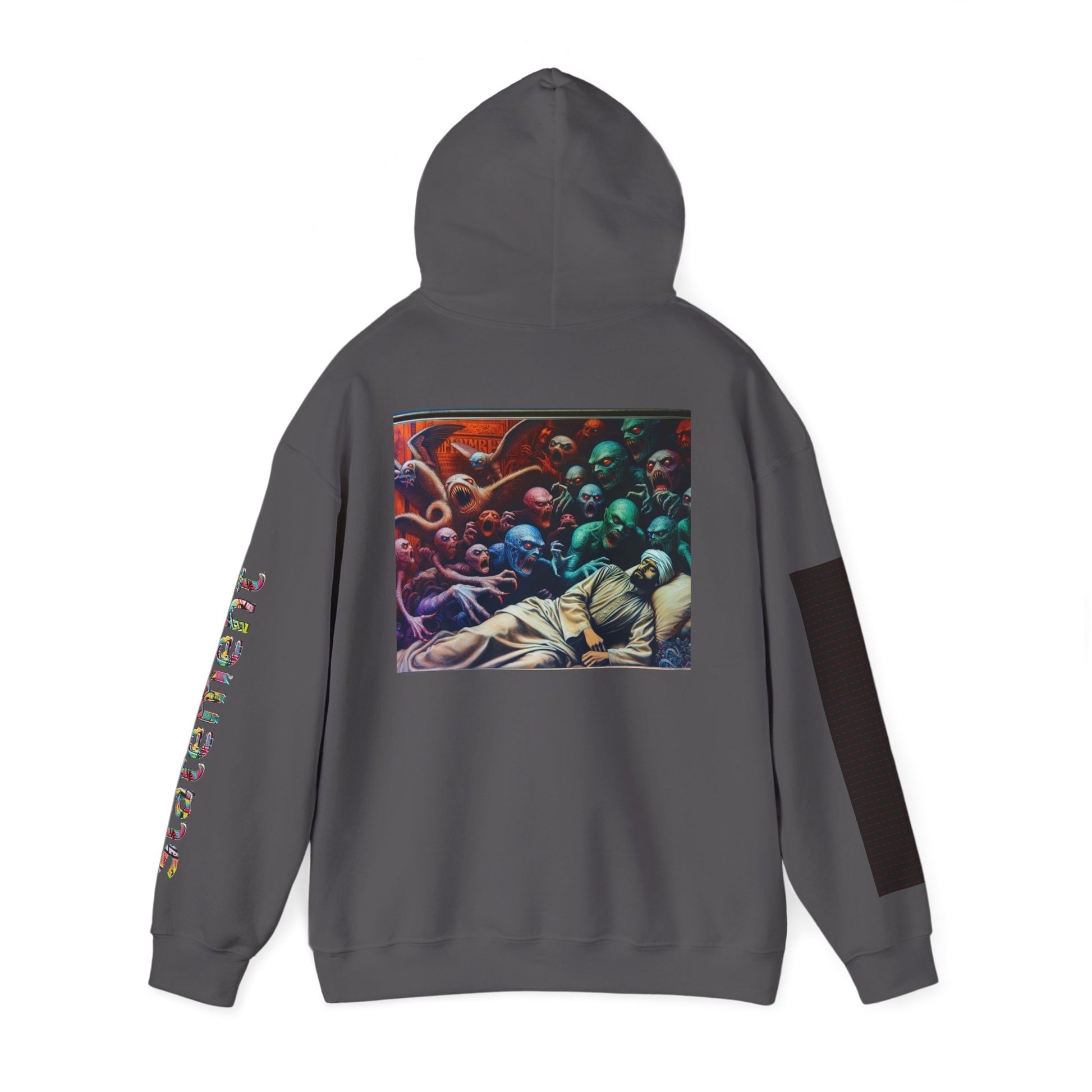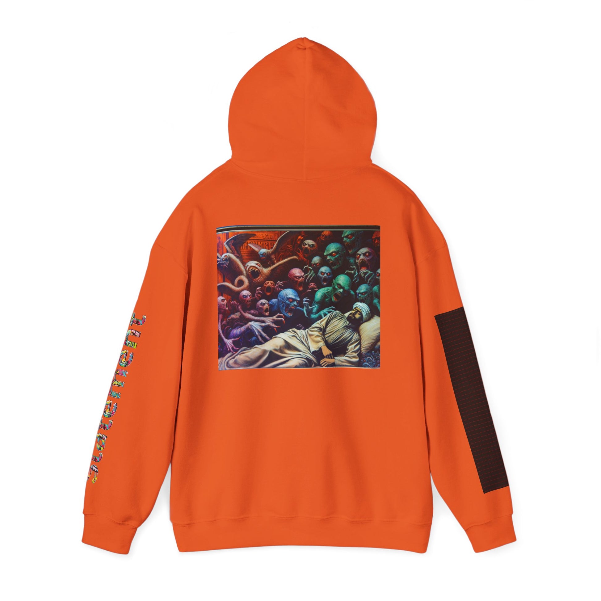 A soft, mid-weight hoodie designed for everyday comfort and subtle self-expression. The clean white canvas highlights a colorful, layered “Statement” print running down the sleeve—visible, but not loud—so your message feels thoughtful rather than shouty. Wear it on cool mornings walking the city or layered at a cabin desk while sketching ideas. The roomy kangaroo pocket and double-lined hood add practical coziness. Thoughtful construction (tubular knit, OEKO-TEX dyes, tear-away label) keeps the feel smooth against skin and the silhouette tidy. Available with optional chest or wrist embroidery and DTF-print detailing for a refined, long-lasting finish.